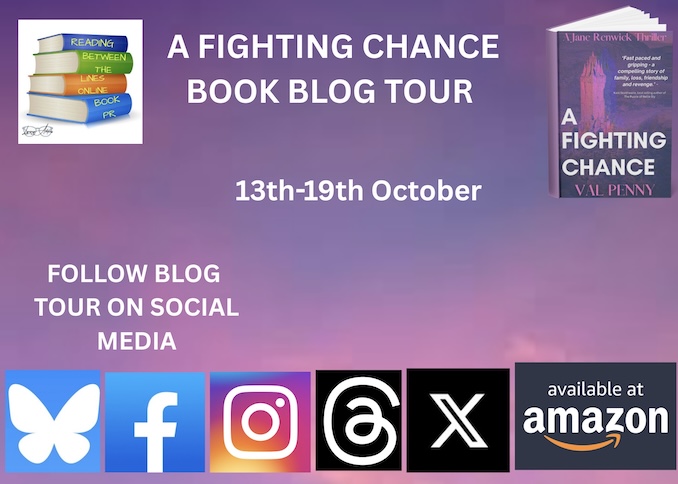 A Fighting Chance is the second in the Jane Renwick Thrillers series by Val Penny. DS Jane Renwick started as a character in her DI Hunter Wilson Crime Thrillers,which is set in Edinburgh, Scotland. But Val felt she deserved her own series. Having read every book she’s written, I agree.