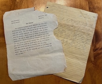 I wonder if Mom and Dad were inspired to find the typewriter or it was just a coincidence. I still have two copies of a short piece, The Tornado, I wrote. As you can see, the original was handwritten. The second was typewritten on the Remington.